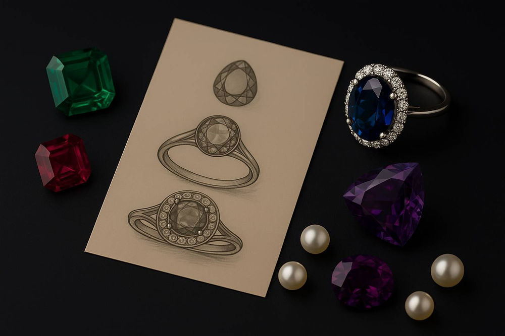 Explore the world of precious gemstones. Learn about their origins, colors, and symbolism. Find the perfect gem for your custom jewelry design.